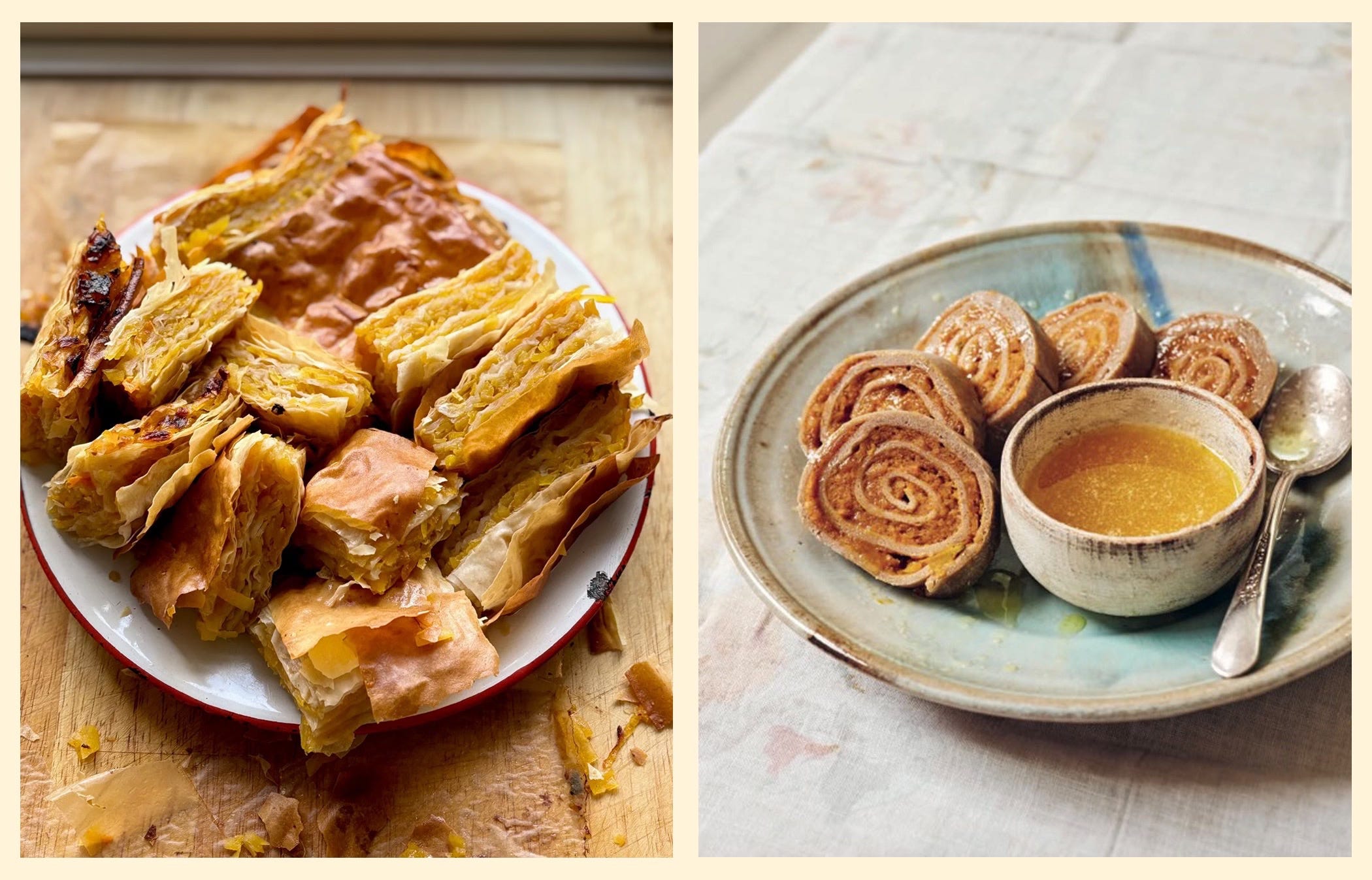 Check de substack van Irina Georgescu: er staan twee recepten voor de Roemeense zoete pompoenstrudel: de origineel uit haar boek Tava en de snelle, gelaagde versie met kant-en-klaar filodeeg. Haar nieuwste boek Danube is ook prachtig, sowieso een dikke tip.